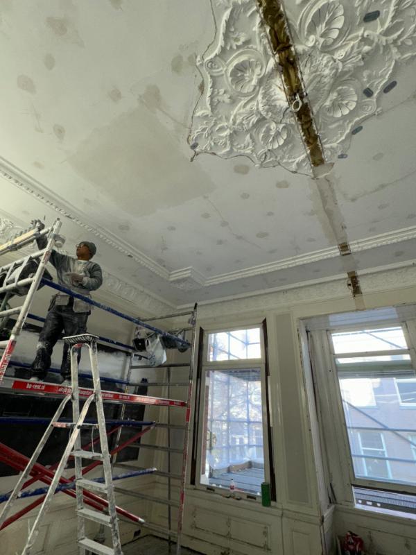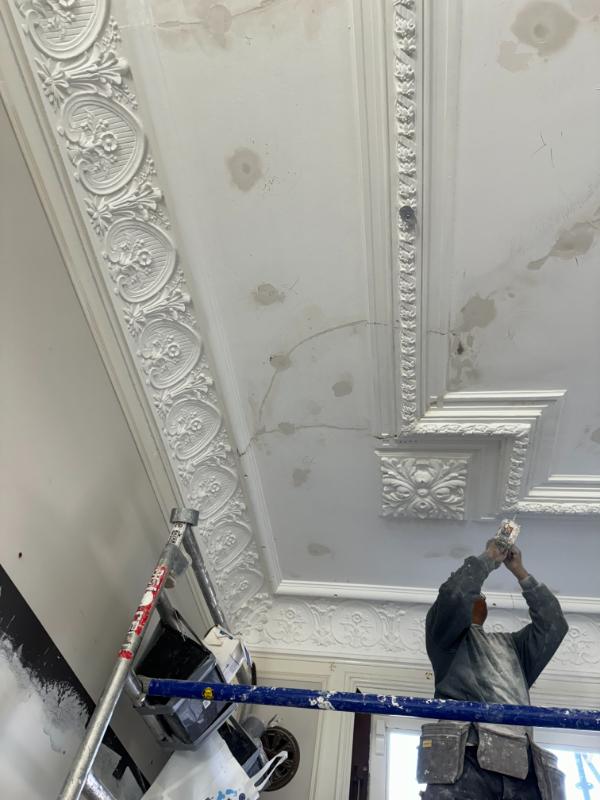 Muur weghalen in Amsterdam Zuid: ornamentenplafond in oude glorie herstellen